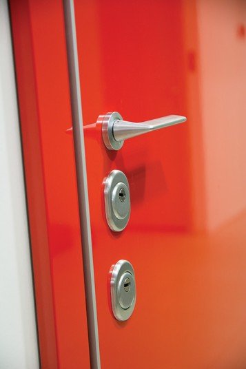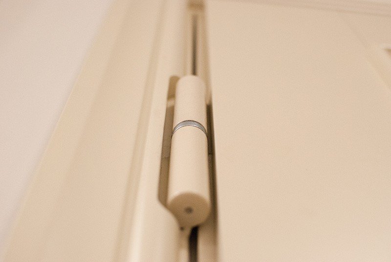 Имеется два антивандальных штыря в районе петель, а также интегрированная схема закрытия двери.